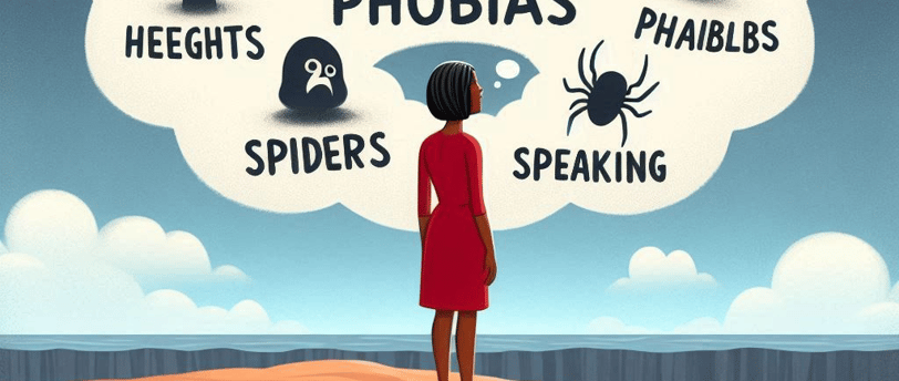 Phobias are intense and irrational fears of specific objects, situations, or activities. They can significantly impact daily life, causing distress and avoidance behaviors. Common phobias include fear of heights (acrophobia), fear of spiders (arachnophobia), fear of flying (aviophobia), and many others. Phobias often develop from past experiences, learned behaviors, or genetic predispositions.